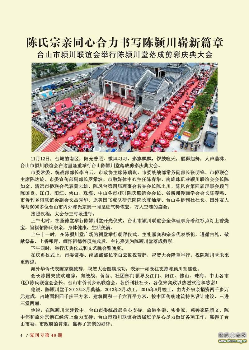 台山陈颍川堂举行落成剪彩庆典